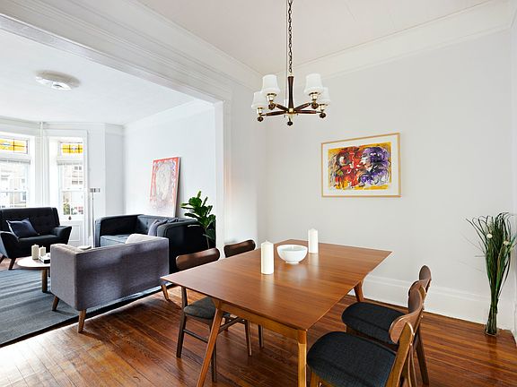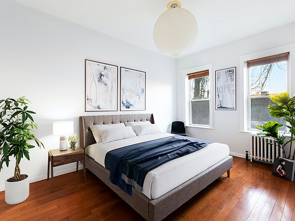 Gorgeous Townhouse on quiet tree lined street in Sunset Park. Old world charm as you enter through the vestibule to this charming legal two family home that with a little help from your architect could also be returned to its original single family home status. The first floor has a lovely open living room with adjoining dining room and office facing the street. Facing south it is bathed in an incredible afternoon and evening light. The large bedroom faces the tranquil garden to back. An ample sized kitchen with terrace above the garden lets you enjoy sunsets and host dinner parties in the garden below to your heart's desire. The upper floor has an additional bedroom and both have a great rental history. Plenty of opportunity exists to expand into the windowed unfinished basement that currently only houses a washer drier and gas boiler. Close to Industry City and the amazing food, entertainment and shopping that it offers. Leif Ericson and Owl's Head Park are right around the corner as well as the N Train. The property is about two blocks from the Sunset Park/BAT Ferry terminal that goes to Manhattan and Rockaway Beach.