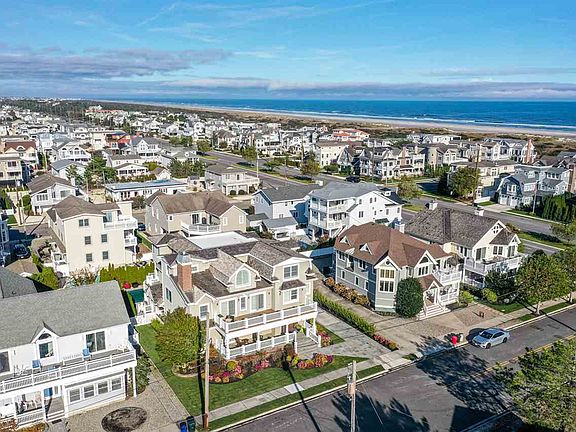 STUNNING CUSTOM THREE STORY HOME ON AN OVERSIZED 80' X 110' LOT LOCATED EIGHT HOMES TO A FABULOUS SOUTHEND BEACH. Zeigler Ranalli Developers built this impressive upside down home with almost 5700 square feet of superb quality construction offering 5 generous bedrooms, all with en-suite baths, 2 powder rooms and an exterior dedicated pool bath. Approach this masterpiece up the bluestone entry path and covered porch through the gorgeous mahogany door into a two story, over sized foyer. The first floor has 3 large bedrooms, each with en-suite bath, powder room, laundry with custom cabinets and a sensational oversized family room with custom built ins, wet bar and an easy flow to a rear covered porch as wide as the home that overlooks a gorgeous in ground pool with travertine sun deck. The fully outfitted cabana with roll down shutter is attached to a detached two car garage. The pool area with access to the dedicated pool bath has a beautiful privacy, evergreen landscape screen. A custom elliptical staircase ushers you to an extraordinary vaulted great room that is enormous and flows easily to an oversized southern exposed sun deck with OCEAN VIEWS. The great room is flooded with natural sunlight offering a beautiful living room with gas fireplace, two seating areas and an expansive dining area. The beautiful custom kitchen has a large center island, stone tops, high end appliances, 3 ovens, custom cabinets, pot filler spigot, oversized pantry and immediate access to a rear deck overlooking the pool with privacy shades, bbq grill and a circular stair to the pool. Second floor has a wonderful guest bedroom with en-suite bath, access to the rear deck, powder room to service the great room and a private staircase to the third floor. The top floor is fabulous starting with a sun filled office, large master suite with two huge walk in closets, second laundry, separate sitting area, private deck and a sensational master bath with soaking tub, separate vanities and an extraordinary shower. Special features are truly endless including a 4 stop elevator off of the driveway, full cedar shake exterior, gorgeous landscaped gardens, plenty of off street parking, richly stained hardwood floors throughout most of the home, beautiful custom tile in all bathrooms and back splashes, custom window shutters, custom wainscoting, 5 expansive decks, outdoor shower off the laundry room and distributed audio. Home is sold very attractively furnished and is easy to show.