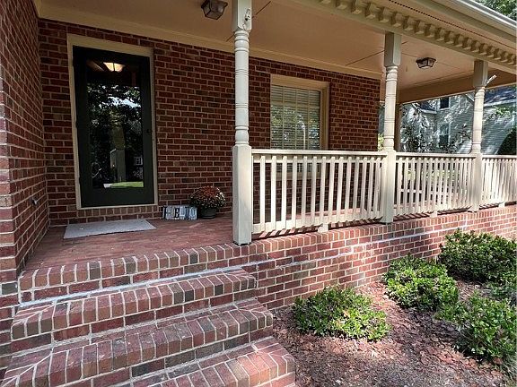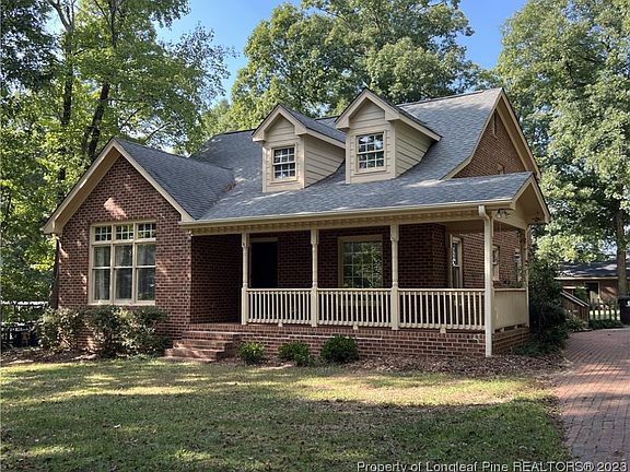 All Brick Cape Cod in North Sanford on .58 acre lot in a quiet, one road neighborhood of Charleston Place. Great location near US Hwy 1 and 421 Bypass, convenient to everything with easy commute to Raleigh or Fort Bragg. Beautiful wrap around porch waiting for your rocking chairs and swing. Inside you will find brick floors with formal dining room, large country kitchen with double ovens, french door refrigerator, lots of counter space and cabinets, breakfast bar and nook. The living room has a wood burning fireplace, wet bar and french doors which lead out to the massive deck overlooking the fenced backyard. Lovely master bedroom with Cathedral ceilings is on the first floor with dual vanities & 2 walk in closets . Upstairs you'll find another bedroom with its own bathroom, walk in closet and storage closet, two more spacious bedrooms and another full bath. Detached, double door garage which is heated and cooled and makes a great shop plus a lean to for additional storage. NO HOA's.