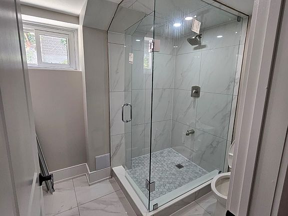 Private separate entranceModern kitchenBuilt-in dishwasherElegant glass-enclosed showersSeparate in-unit laundry area