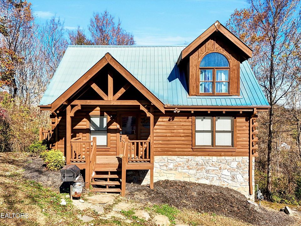 Welcome to ''Bear's Den'' - your quintessential mountain escape in the heart of Pigeon Forge, just off the bustling Parkway! This charming 2-bedroom, 2-bathroom cabin offers a cozy retreat with a rustic touch, featuring pine walls throughout, creating a warm and inviting atmosphere. As you step inside, you'll be greeted by the open concept main living area with cathedral ceilings, allowing natural light to flood the space, creating an airy and spacious feel. The centerpiece of the great room is the stacked stone gas-log fireplace, perfect for cozying up on cool mountain evenings. The kitchen seamlessly blends with the cabin's rustic aesthetic, boasting wood cabinets and an open design that encourages conversation. A convenient breakfast bar provides additional seating, making it easy to entertain while whipping up your favorite mountain cuisine. On the main level, you'll find a comfortable bedroom, providing a peaceful retreat for your guests, and a full bath with a tub-shower combo. Upstairs, a delightful loft area awaits, complete with a pool table for endless entertainment. The primary bedroom, featuring its own private ensuite, beckons with a touch of luxury, offering a whirlpool tub right in the room. Enjoy a soothing soak while gazing out at the serene surroundings. Outside is a wonderful covered deck perfect for entertaining or relaxing in the hot tub on the cool mountain evenings! Bear's Den is not only your personal oasis but also a fantastic opportunity for a vacation rental. Its superb location offers super convenient access to The Island, the exhilarating Dollywood theme park, and the Parkway making it an ideal choice for those seeking an unforgettable mountain getaway. Embrace the charm, comfort, and adventure that Bear's Den has to offer. This cabin is ready to be your gateway to the Smoky Mountains and all the memories waiting to be made. Call today to schedule your showing!