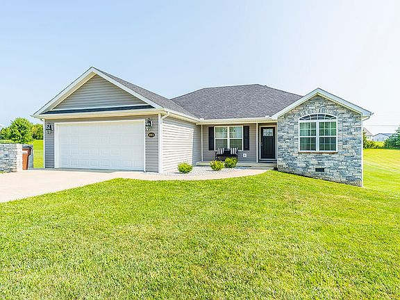 This lovely practically new ranch home sits in the center of one of the nicest acre lots in Madison County. This one owner home has been well loved and features an open concept throughout the main living areas which provides lots of flexibility with furniture arrangements. The home also features a split bedroom concept, laminate wood floors throughout the main spaces, carpet in the bedrooms and tile in the baths, primary ensuite boasts a trey ceiling + ceiling fan, double bowl raised height vanity, 5' tiled walk in shower with glass door & walk in closet. One of the spare bedrooms has a vaulted celling and ceiling fan. Sellers have recently expanded and stained the deck. This also provides for extra storage under the deck. This well loved home is available for the first time so get excited!