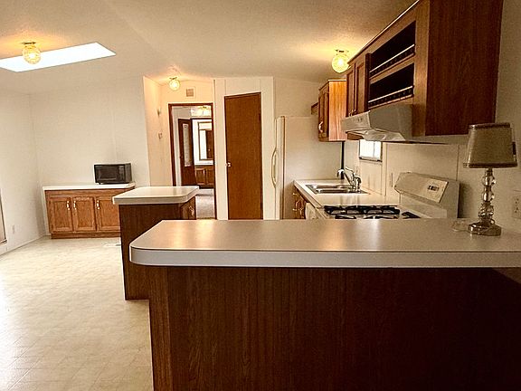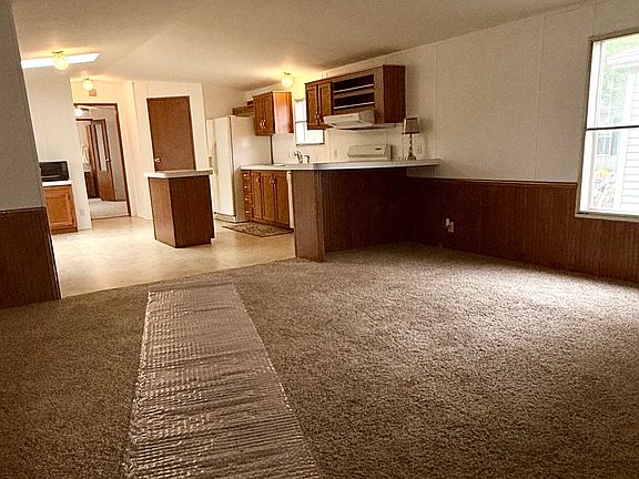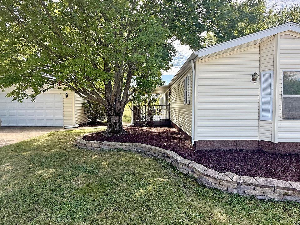 3 bed / 2 full bath mobile home with over 1200 square feet. 2 car detached garage. Master bedroom with private full bath. New roof in 2022. New carpet and fresh paint in 2025. Good condition. Central air.