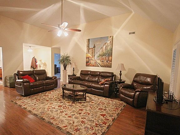 - Great Room: Bookcase, Floors-Hardwood, Ceilings-High (over 9 Ft), Ceiling Fan