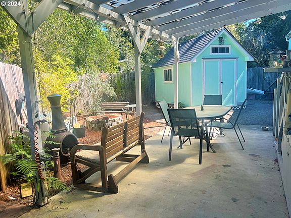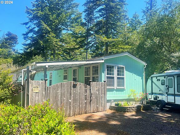 Picture a charming two-bedroom, one-bath home nestled within the serene gated community or Coast Village, enveloped by majesting tall trees that provide a tranquil amotsphere.  The home features a fenced yard, perfect for pets and privacy, ensuring both sucrurity and a cozy outdoor space. Additionally, there are convenient RV hookups for a small RV or space to park a boat for the outdoor explores. This setting combines modern conveniences with natural beauty, offering a peaceful retreat within a secure and picturesque environment.