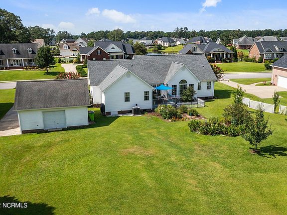Immaculate home located in the popular area of Hunters Ridge in New Bern NC. This home sits on a .64 acre lot boasting a monarch butterfly garden. The fountain and rain barrels are included! The crawl space was encapsulated in 2015. The home has three bedrooms and a bonus room over the garage with a full bathroom. There is a separate dining room. Enjoy the private deck outback. There is natural gas for the gas logs installed in 2018 and gas range installed in 2019.. New HVAC installed in 2017. Flooring in the baths and living room was replaced in 2018. The front porch railings were replaced and new low E windows in the master bedroom, office and living room. There is a generator switch as well. New shingles were installed in August of 2019. French doors were installed in the master bedroom in 2020. The bonus room has new hvac in 2021. The house has fiberoptic cable installed in 2021. You will love the detached workshop or man cave or she shed!! Doors were replaced in 2020. There are pull down stairs in the detached building with ample storage above. This home truly has it all!