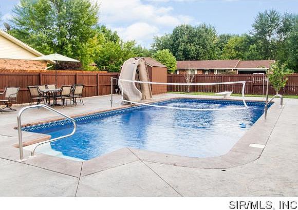 It's not too late to enjoy the rest of summer by your AMAZING IN GROUND POOL! The outdoor living space of this home will leave you speechless; 36 x 18' saltwater pool that's up to 9 feet deep w/ diving board, slide & volleyball net, beautiful concrete overlay w/ dining space, outdoor fire pit and another covered patio for privacy. Courtyard entry sets the stage for this nice 2748 square foot "H" shaped ranch w/ 4 bedrooms and 3 baths. Great floor plan provides living space that's separated from the bedrooms w/ a pocket door. Large living room w/ fireplace, formal dining room, fully equipped kitchen and slate tile bar room complete the main entertaining space. 3 generous bedrooms(2 share a Jack & Jill bath) compliment the large master suite w/ walk-in closet and nice master bath. Updates include: 2011-roof & gutter guards, 2013-air handler, cook top, dishwasher, dryer, microwave, pool, refrigerator, washer and water heater. Put this awesome home on your short list today!!