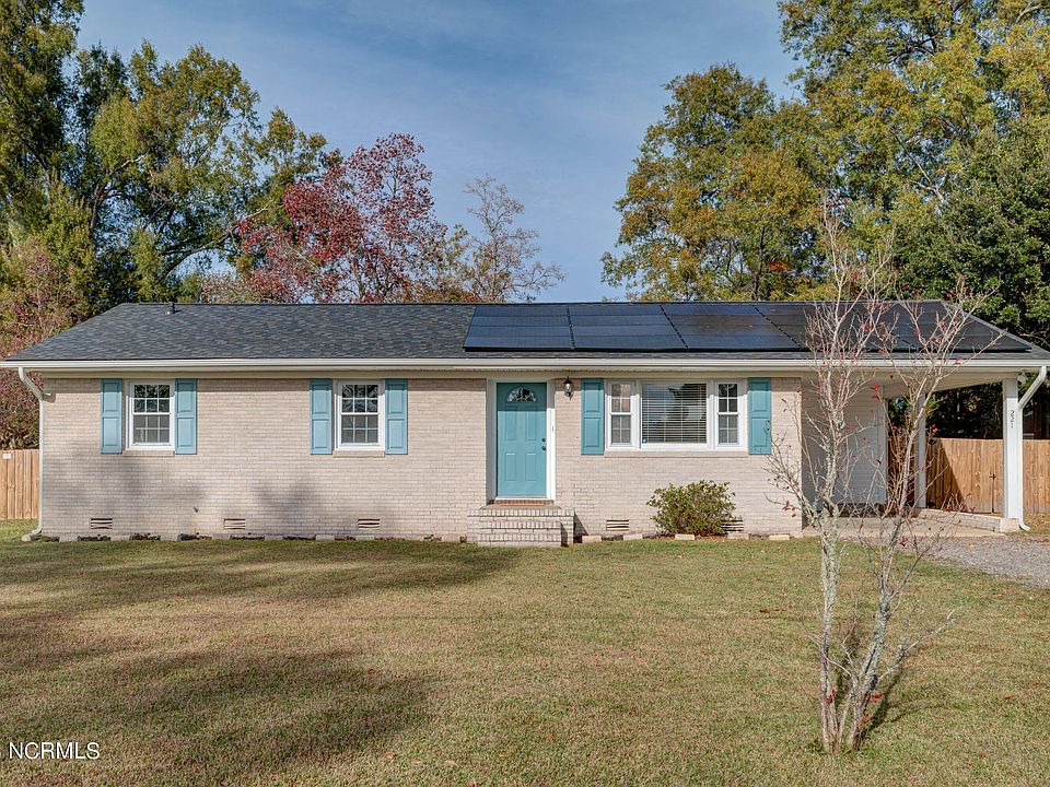 No HOA, no city taxes, and only minutes to downtown Wilmington! Welcome to this adorable brick ranch which sits on nearly half an acre with 3 bedrooms and 2 FULL baths (including huge master bath with jetted spa tub). Recent updates include: New roof in 2019, new HVAC in 2023 (with WiFi), newer hot water heater, brand new interior paint (including ceilings), new fans/kitchen light, new microwave & dishwasher, brand new electrical panel system, new gutters, new gravel driveway, new solar panels. Kitchen & master bath previously updated. This home also features a huge, grassy yard with fully fenced backyard, and is on municipal water/sewer. This beautiful home would make a perfect starter home, investment property, or whatever your heart desires.