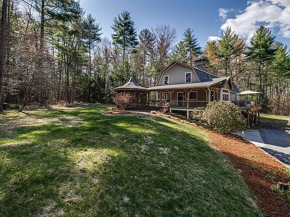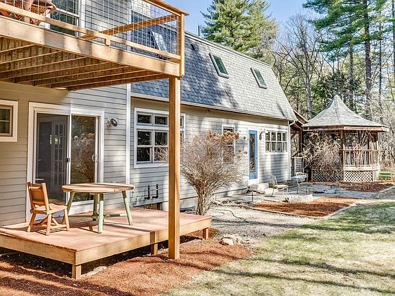 This driveway leads to solitude and a private setting at this 4-bedroom custom contemporary with open beams and fantastic layout. Stylish kitchen opens to dining area w/ added nook and plenty of natural light. Pretty hardwood floors throughout. Wood stove makes chilly days cozy. Large master w/ spacious walk-in, full bath w/ skylight, new carpet (April 2020) and new deck--a true enclave. Bonus room on 2nd floor with 3 bedrms and 2 full baths. Natural stone and architectural interest on both floors. 1st flr in-law or Air B&B w/ laundry, full bath, separate entrance. All bathrooms updated with new vanities & tile. Great deck for grilling--also side porch, sweet patio in back, and gazebo. Professionally-landscaped. Dry walk-out basement for workshop. New rear deck on each floor in rear. 50-year-shingle on 2016 roof, on-demand hot water, mini-splits for comfort. Panel wired for generator if desired. Bucolic and unique charm with superb light. Extremely well-kept and clean.