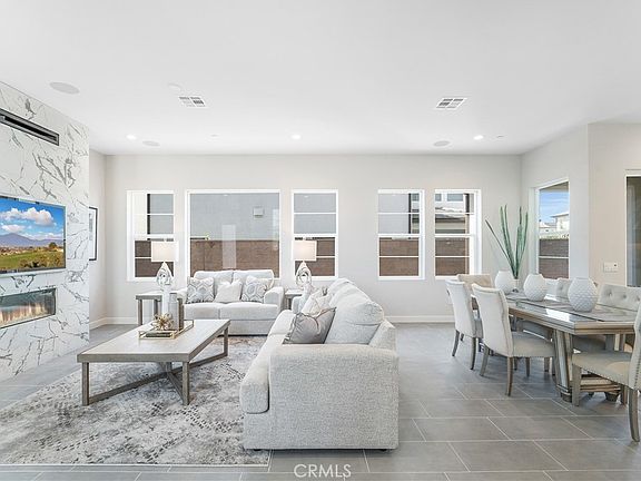 BEAUTIFUL, BRAND NEW, NO MELLO-ROOS, AND DESIRABLE CORNER LOCATION! 4 Bedrooms with a Large Bonus Room or 5th Bedroom Option and 4 Bathrooms, including one bedroom and bathroom downstairs. Popular floor plan (Scarlet at The Oaks/The Meadows by Toll Brothers) that is now sold out. Highly desirable location next to the park because there are no immediate neighbors on East and South sides of the home. The home feels light and bright with lots of windows and with open views over the park. Other highlights include SOLAR, two car garage, 48" linear fireplace in great room with upgraded floor to ceiling designer tiles, JennAir stainless steel appliance package, upgraded and modern flooring in the great room and kitchen, and much more! The Oaks/Meadows offers luxury resort-style amenities, including a large recreation center with private clubhouse, two pools, two spas, cabanas, lounge with fireplace, outdoor BBQs, 2 dog parks, sports fields, basketball, pickleball and volleyball courts! Additionally, more than 10 acres of dedicated open space with trails connecting to the Serrano Creek regional trails system for miles of biking, hiking, and walking trails nearby! Don't miss out this incredible home!