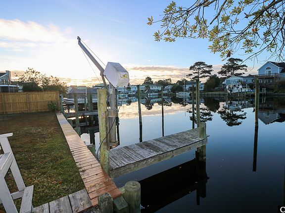 Bring your big boats, this wide canal front can handle it. The dock can fit two large boats. Perfect for fishing, crabbing and the canal views are fabulous. This home is kept immaculate. Siding, all windows, & storm doors were replaced in 2014. In 2021 a super efficient heat pump water heater was installed. Recent appliances. The drain field was replaced in 2012. It appears the roof was replaced that year too. Upgraded vinyl bulkhead is a great addition. Nice storage downstairs including laundry area, huge workshop and huge 42 foot deep garage. Another feature is a whole house water conditioner. Nice fenced yard as well! It even has a fruit bearing peach tree n the back yard. Enjoy the amenities of Colington Harbour, clubhouse, fishing, boating, crabbing, playground, sound access, boat ramp & dock. For a small fee join the pool. Don't miss out on this boaters paradise.