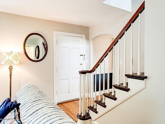 This adorable 3 bedroom, 2 bathroom Cape Cod with a charming front porch is conveniently located in St. Matthews near great shopping and restaurants. On the first floor, you'll find a living room with a fireplace, the light-filled dining room, a bright kitchen with gas stove and white cabinets, a bedroom (currently an office) and a full bath. The center staircase leads to the master bedroom, another bedroom and full bath on the second floor. There are beautiful hardwood floors throughout the home. The finished basement features a family room, a separate room currently used as a bedroom, and the laundry area. There is a lovely deck off the kitchen overlooking a nice-sized yard and beautiful in-ground pool.