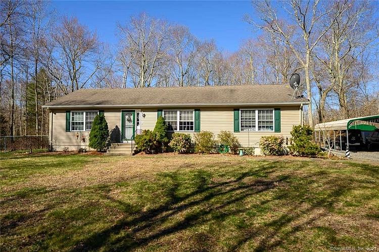 Large very well maintained Ranch situated on over 5 private acres. Large Kitchen with breakfast bar dining area Open to large livingroom w propane gas stove ( additional heat source). Great Floor Plan with Private Master bed and full Bath on one end of the house and 2 additional good size bedrooms and Full Bath on the other end. Slider going out from the Kitchen to a Huge deck leading to stone fire pit in the yard during the cool summer nights.