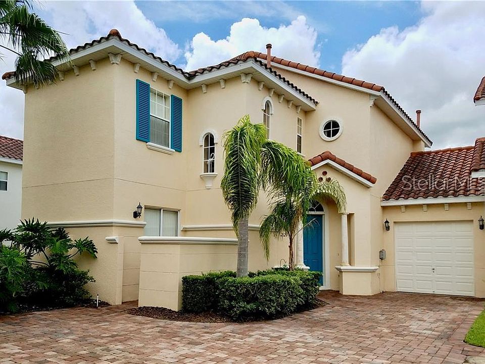 Beautiful and immaculate Tuscan Style Villa! Five Bedrooms with Two Master Bedrooms - One upstairs and one downstairs! Perfect as a short-term or long-term rental, to use as a vacation home or to live here all year! This home has it all! Fully-equipped kitchen with eat-in area AND separate, formal dining area. And don't forget the incredible pool to refresh and cool off as well as weekend pool parties!. The community is a gated-community featuring a Clubhouse, Playground, Business Center and gym! It also has beautiful landscaping, meticulously taken care of by the Association. Located near parks, schools, shops, supermarket, restaurants and lots of shopping! Less than 10 miles from Walt Disney World and everything that Disney has to offer! Just a few-minute drive to I-4, the rest of the attractions are just waiting for you! This house won't last for long so call today and set up an appointment!