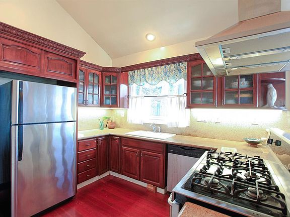 Quintessential Pt Richmond home with views across the city. Upgraded kitchen with granite counters & SS appliances, tile bathrooms, wood floors, & vaulted ceilings. Rear sunroom is great for dining or office & looks out to rear patio. Lot extends aporox to willow tree on left. Life in Pt Richmond offers urban living in an historic small community with music events, restored Municipal Natatorium (the Plunge), yet is minutes to Marin or Hwy 80.