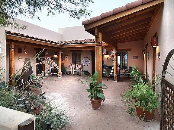 A beautiful, artfully secluded "luxury frontier" home atop your own hill with stunning panoramic views. This adobe home is masterfully crafted, with rugged wood interior and understated elegance plus high-quality construction and top-line appliances. Your electric bill: nearly zero, thanks to 30 solar panels. Blazing fast free Internet. If you find that you love this place as much as well have, there is another 36 acres with two home sites adjacent. This is offered at $80,000. If you build a home then you are in a perfect place to inspect and make sure that it is done to specificiation. The owner will sell this property with excellent terms for buys with approved credit. The last picture shows an approximate outline of this land. Year lease only. No rentals shorter, please.