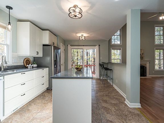 Enjoy an established home with approx. 45K in improvements & updates. Add a large-fenced-wooded backyard plus very desirable schools and you're home! Soaring ceilings add brightness. Laminate hardwoods flow (inc. bdrms.) Updated kitchen has newer cabinets, quartz countertops, huge island with drawers. GAS stove. Owner's suite has French doors to Bdrm 4. Great nursery/office. Lg. Garage is set up for workshop & storage. NEW ROOF, Newer: BOTH HVAC'S, PEX piping, low maintenance vinyl siding +++ Walk to schools, greenways, park & community pool.