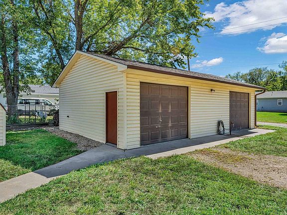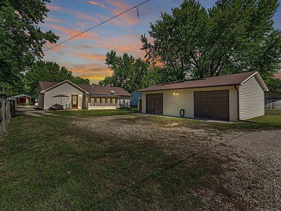 Don't miss this rare find in Carbondale, KS. This charming 4 bedroom, 2 full bathroom home offers small town living with an oversized outbuilding which is an incredible bonus in this serene neighborhood! The outbuilding is perfect for storage, hobbies, or even a workshop and is complete with a jib joist or the mechanic in the family. This inviting home features an open floor plan with vaulted ceilings adorned with beautiful wood beams. The well-designed layout offers a seamless flow from the living area to the dining and kitchen spaces, ideal for entertaining or family gatherings. Each bedroom is generously sized, providing comfort and privacy for all. Don't miss the large main floor laundry room, a large front deck, and an enclosed sunroom. Experience the warmth of small-town living while enjoying modern conveniences in this beautiful Carbondale home. Don't miss our chance to make it yours!
