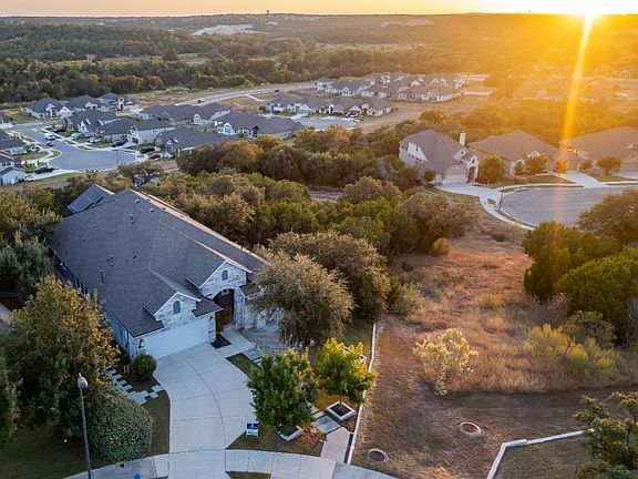 Beautifully elevated Hill Country home offering panoramic greenbelt views and exceptional natural light throughout. The open-concept living area features soaring ceilings, a wall of windows, and direct access to a large covered veranda designed for year-round outdoor living. The kitchen includes a large island, extensive counter space, gas cooking, double ovens, and abundant cabinetry. A spacious primary suite offers peaceful views, a soaking tub, walk-in shower, dual vanities, and a generous closet. Multiple flex spaces allow for an office, media room, or second living area. Secondary bedrooms are well sized with excellent natural light. The backyard combines a usable lawn with the elevation needed to capture the sweeping views. Rare opportunity to own a single-story home with this level of privacy and scenery at $599,900.