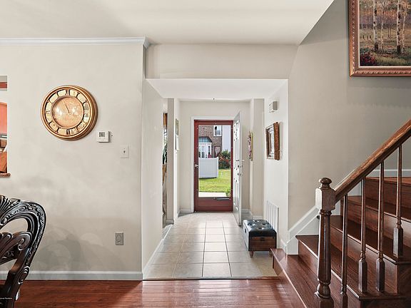 RARE FIND -- 3/4 BEDROOM IMMACULATE TOWNHOUSE IN PRIME LOCATION OF THE DEVELOPMENT! *** Updated custom kitchen and all baths, open floor plan. *** Living room with all Hardwood floors and Fireplace has a sliding door to maintenance free Balcony that provides Serene View overlooking Pond, perfect for Relaxing *** Second floor has all laminate floors, 3 bedrooms and 2 full Baths with Jetted Tubs. *** Walk-out fully Finished Basement has additional Bedroom/Office, Full Bath, plenty of storage and open area with Sliding door to a Private Patio that can be enjoyed even on a rainy day. Central Vacuum, New water heater, New furnace, New siding. *** Development has a pool and other amenities. Excellent schools, close to NYC bus, stores, highways, shops and restaurants.