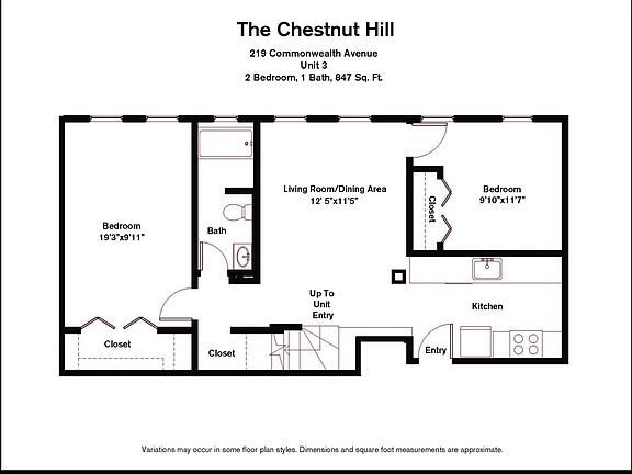 This 847 square foot apartment home has 3 bedrooms and 1.5 bathrooms. This home is located at 221 Commonwealth Ave #3, Chestnut Hill, MA 02467.