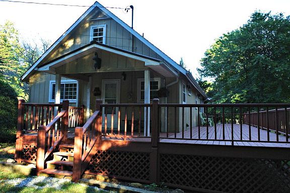 This home would be a great full time residence or mountain vacation home. It has a nearly flat yard w/wide stream plus a wonderful view of Coweeta Lake from the huge 63x12 outdoor living deck. There's also an 11x24 screened porch for extended outdoor living space. Inside this open floor plan home is a vaulted living & dining room for an even more spacious feeling. The kitchen, 2 bedrooms & 1 bath are also on the main & the upper level has 20x10 bonus room (addtl sleeping space) & 2nd full bath. Addtl features, stone wood-burning fireplace, central H&A, easy access off 441S & lots of parking.