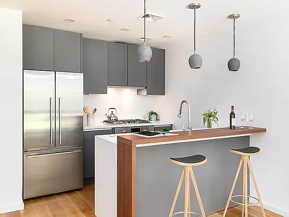 Welcome to 221 Devoe Street Unit 3B, a sleek 1 bedroom with large private balcony perfectly located in vibrant East Williamsburg just three blocks from Cooper Park and three blocks from the subway. This beautiful unit features your own in unit washer/dryer, 7" wide white oak hardwood floors, elegant open kitchen with stainless steel appliances including dishwasher, custom-made European kitchen cabinets and white quartz countertops. The large and stylish bathroom has porcelain tiles and deep soaking tubs. Central air, recessed lights, good closet space and floor-to-ceiling windows complete the package. Building features a colorful lobby, video intercom system, and stunning common roof-deck with Manhattan views. 221 Devoe Street is surrounded by restaurants, bars, cafes, and shops near Graham and Metropolitan Avenues. Cooper Park offers a wealth of options, including a farmers' market on Sundays, a playground and a lively dog-run. $20 credit check per person when applying. Tenant pays utilities.