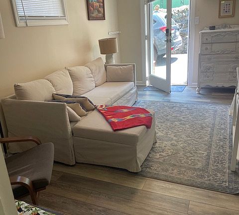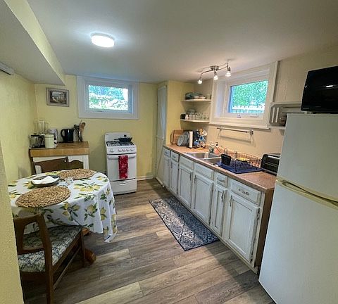 Bright and cozy, one-bedroom apartment with private courtyard, deck, and gardening space. Comfortable bed, sofa, reading lounger, dedicated work space, dining table in full kitchen with high-quality appliances. Off-street parking. Walkable to restaurants, shops, and live music. Guests enjoy this quaint cottage with green space to unwind and enjoy all Asheville has to offer. 2/1 unit is upstairs from this unit and can also be rented together.