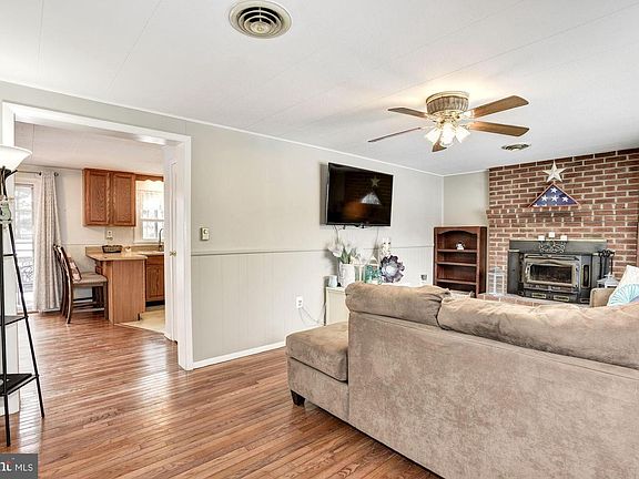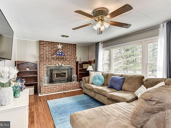 Beautiful Rancher on 1.62 acres boasting gleaming hardwood floors and light filled interiors! Spacious living room embellished with a brick profile wood stove and lofty windows; Dining room with backyard views and easy access to the expansive wrap around deck; Eat-in kitchen highlighted with sleek stainless steel appliances, breakfast bar, and ample cabinetry; Primary bedroom, two additional bedrooms, full bath, and powder room conclude the main level; Family room, laundry room, storage, workshop, and garage access complete the lower level; Recent updates: Electrical outlets and switches, stainless steel appliances, paint, plumbing, laundry room lighting, and more! The exterior features 1-car ; attached, 2-car ; detached, oversized RV garage, landscaping, expansive wrap around deck, 10-quart woodshed, play area, private lot, and backs to trees. A MUST SEE!