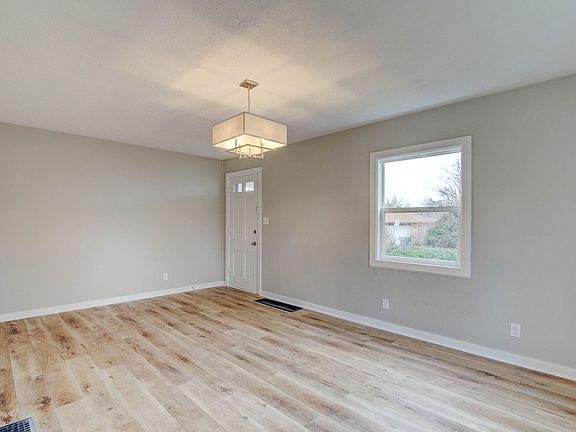 Totally remodeled 2 bedroom ranch home on fantastic lot with no neighbors behind you. Expansive rear views of woods and open space. Full basement w/ finished room. Desirable 2 car detached garage w/garage door opener. Updates include: brand new kitchen cabinets and countertops, tiled backsplash, new LVP flooring throughout entire home, new roof and new vinyl windows (Dec '23), all interior freshly painted, new light fixtures throughout and much more. Spacious living with the open concept between living room and kitchen. Glass enclosed rear patio. All kitchen appliances stay. Washer and dryer stay. Home is ready for you to move right in. One year home warranty provided.