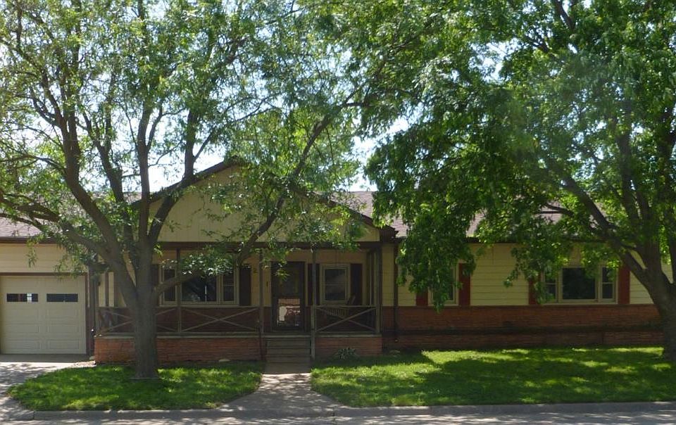 NEW CARPET - NEW PAINT as of October 2019!!! Lots of POTENTIAL in this 4 bedroom 2 bath home in Hoisington. The basics are all there, 1758 sq. ft., beautiful kitchen with breakfast bar, large living room with fireplace all on one level. This home has an over-sized 2 car garage with work area and sits on a large shaded corner lot! Check out the great front porch for relaxing with friends on weekends or evenings. Value added extras include new windows with transferable warranty and recently installed 50 year composition shingles. This home is waiting for YOU!