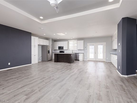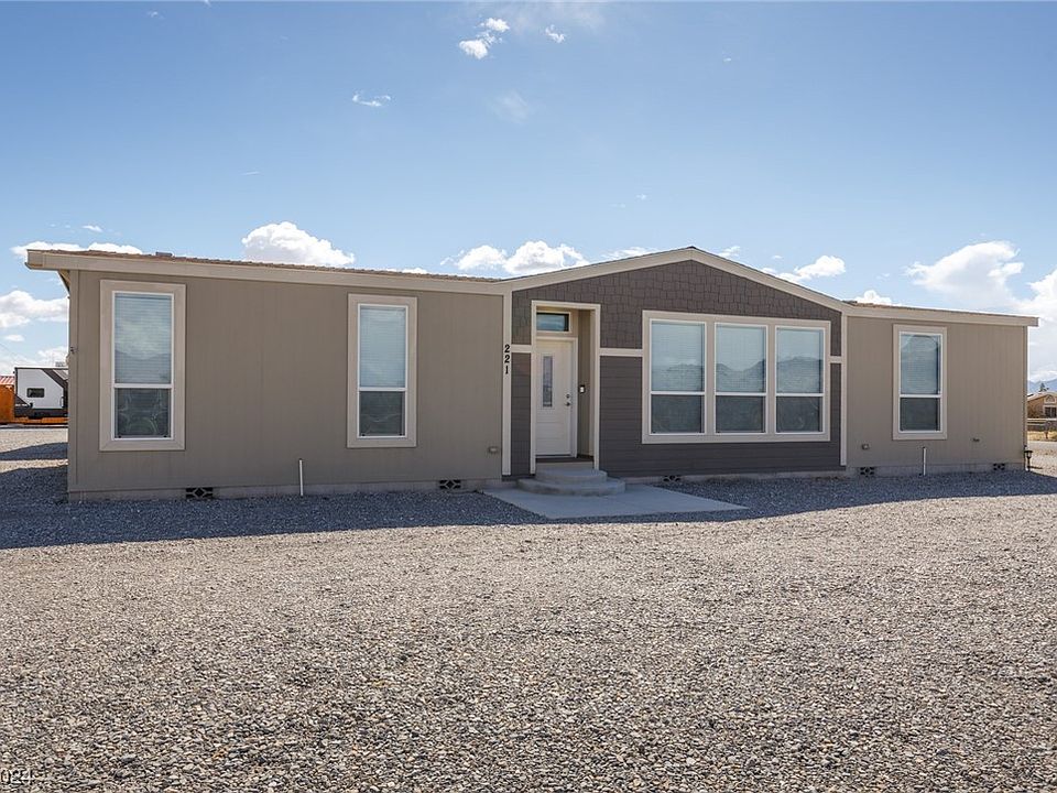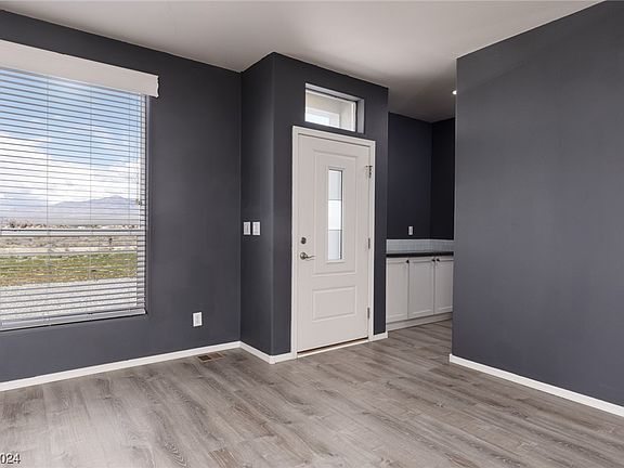 FANTABULOUS mountain views! Such a peaceful environment to call home on the North end of town! Revel in your quiet tranquility in this open-concept living area home, with 9' ceilings, a skylight, and a coffered ceiling in the great room!! Kitchen has a large island with built-in USB port and custom cabinetry. Unwind in the beautiful primary retreat-like bathroom with it's large frameless glass shower, double sinks with backlit mirrors, and tons of storage! Luxury vinyl plank flooring throughout! Large extended patio with Alumawood covers to enjoy the glorious mountain views!! Fully fenced 1.1 acre property including RV hook-ups for electric (50 amp), water, and septic!! Pictures to show off this lovely and rare Pahrump find coming soon!