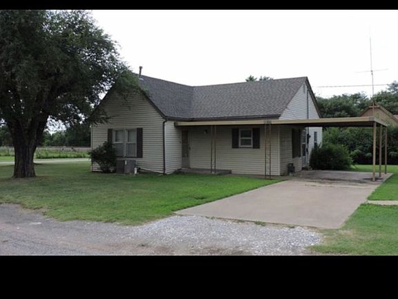 The house has three bathrooms, one bathroom, 1,071 square feet, all appliances, big yard on a corner lot, carport, and little shed.