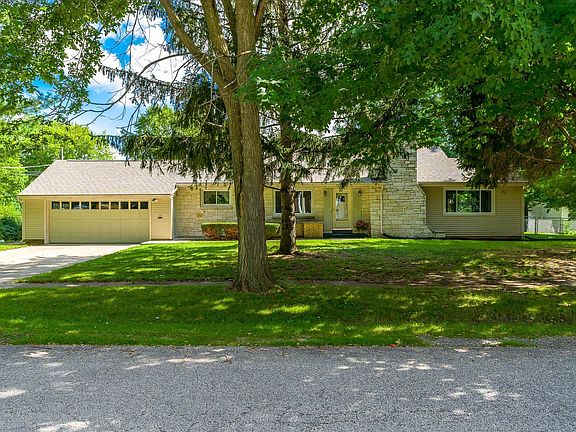 This well built mid-century ranch is waiting for you.Limestone and vinyl exterior with newer windows and architectural shingles.All gutters have protective covers even the two storage sheds.Enjoy the fenced double lot, .42 acre with the 20x15 lattice covered deck.Large open freshly painted living room that has a fireplace with built ins and three over sized picture windows.Dining area has another large window with built in under window bench and buffet area.The efficient kitchen has additional seating at the breakfast bar.There are hardwood floors under the carpeted bedrooms.Lower level has a bonus room with closet framed that could be used as an additional bedroom. The 565 sq ft family room has another fireplace with built ins and knotty pine walls.Another bathroom helps to compliment the lower level area.And yes, there are more built in for storage.What a home! Home is sold "as is"