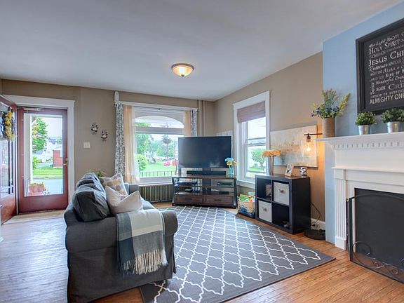 This charming twin home gives a welcoming appearance with large living room and dining area with gleaming hardwood floors as you enter the home. There is also an ornamental fireplace. Neutral warm decor throughout . The modern kitchen has been upgraded with center island, plenty of cabinetry and counter space with additional eat in area. The large mudroom as additional space for computer area. The second floor offers three generous sized bedrooms with closet space. Updated bathroom with modern flare. The heated 3rd floor can be a 4th bedroom or other possibilities. The exterior deck leads to the fenced yard and one car garage with a second floor for storage and a w workshop area. Don't miss out on the charming home! Check out the pictures.Sellers relocating out of the area.