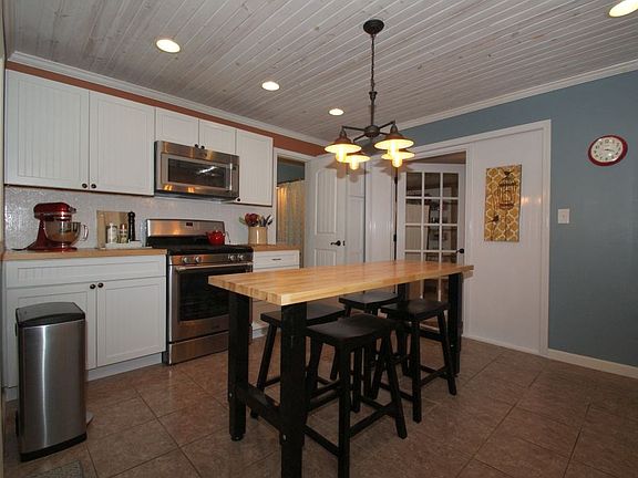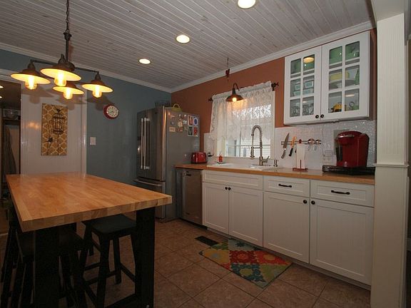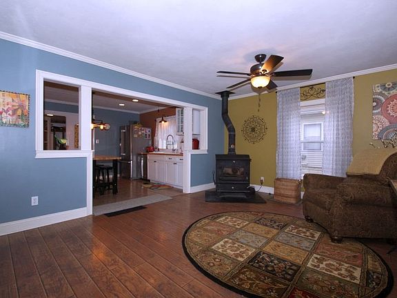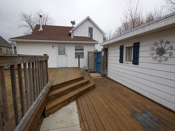 Small Town Country Charmer! Tastefully and completely remodeled farm house has country charm with modern accents. This home is out of the story books welcoming you with a white picket fence and inviting front porch. Inside you will find a glowing fire in the wood stove to warm the entire house. The charming kitchen is complete with stainless appliances and a garden window. The french door leads to plenty of storage in the pantry with the laundry conveniently located there also. The living room has a wood beamed ceiling and french door to add to the country charm. The main level also houses a bedroom and bath for your convenience. Upstairs you will find 2 bedrooms and landing complete with huge walk in closet. A 2 car insulated,heated and cooled garage adds to the package. Back yard boasts above ground pool and huge deck all enclosed with a privacy fence. This is a MUST SEE home!