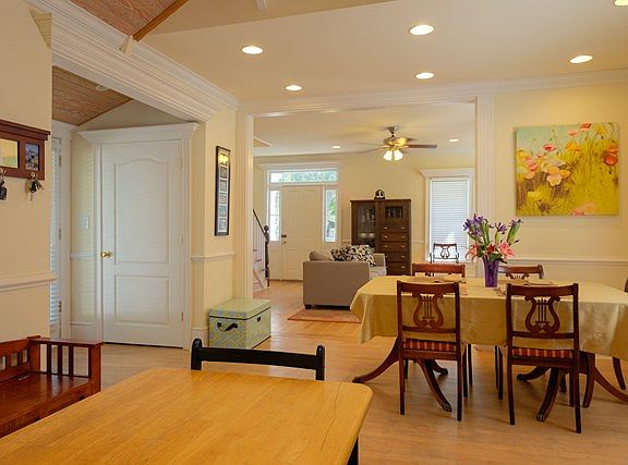 This handsome home, conveniently located in the heart of Edenton's historic district, was originally built a half block west, and relocated for the construction of Edenton High School's auditorium. A large living room is open to a spacious kitchen that is sure to be a cook's delight. One bedroom and bath are on the first floor, and 2 upstairs bedrooms share a full bath. Features include abundant natural light, wood floors throughout, and double porches highlighted by intricate Victorian millwork. The rear yard is surprisingly large for a downtown property - and an open floor plan is a rare find in the historic district! Enjoy living in the heart of Edenton, and being a short walk away from nearby shops, restaurants, and the waterfront.