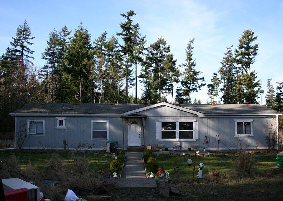 1999 Moduline Doublewide (28 x 66) on 10+/- private acres. Home needs a lot of remodel. Cathedral Ceilings, open Kitchen, huge front and back patios. Laminate floors in LivRm and DinRm. Newer carpets in BedRms and FamRm. French doors off DinRm leads to patio w/exposed aggregate. Front/Back landscaped w/cottage stones. raised vegetable gardens.