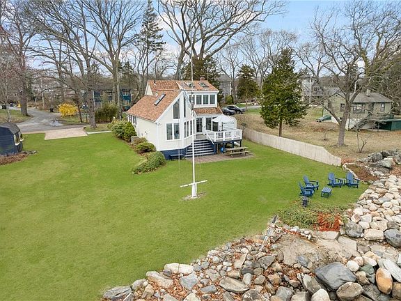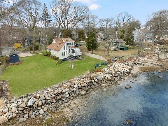 Located in the sought after Lone Tree Point area of North Kingstown, this beautifully appointed waterfront home offers stunning views and access. This 2 bedroom home features an open concept kitchen, dining area with electric fireplace, and living room with sliders onto the spacious deck. Step down from the deck onto your grassy lawn before using your property's steps to gain access to the cove. Or stroll down to Lone Tree Point Beach. Two sheds, an outdoor shower, and parking area ensure you'll enjoy every moment of your indoor and outdoor living spaces. A first floor primary en suite has soaring ceilings and floor to ceiling windows with a luxurious bathroom and custom closet space. An additional full bath and laundry, along with plenty of storage and pantry space are also on this level. The second level features a generous bedroom with skylights and magnificent views as well, and a hallway of closets for all your storage needs. Ability to apply for a mooring, Class I survey available, and a strong rental history combine to make this property a very special and rare find. Conveniently located within a short distance to picturesque Wickford Village, a short drive to Narragansett, Jamestown, and Newport. Take the train to Providence or use Amtrak! Meticulous, move in ready waterfront living!