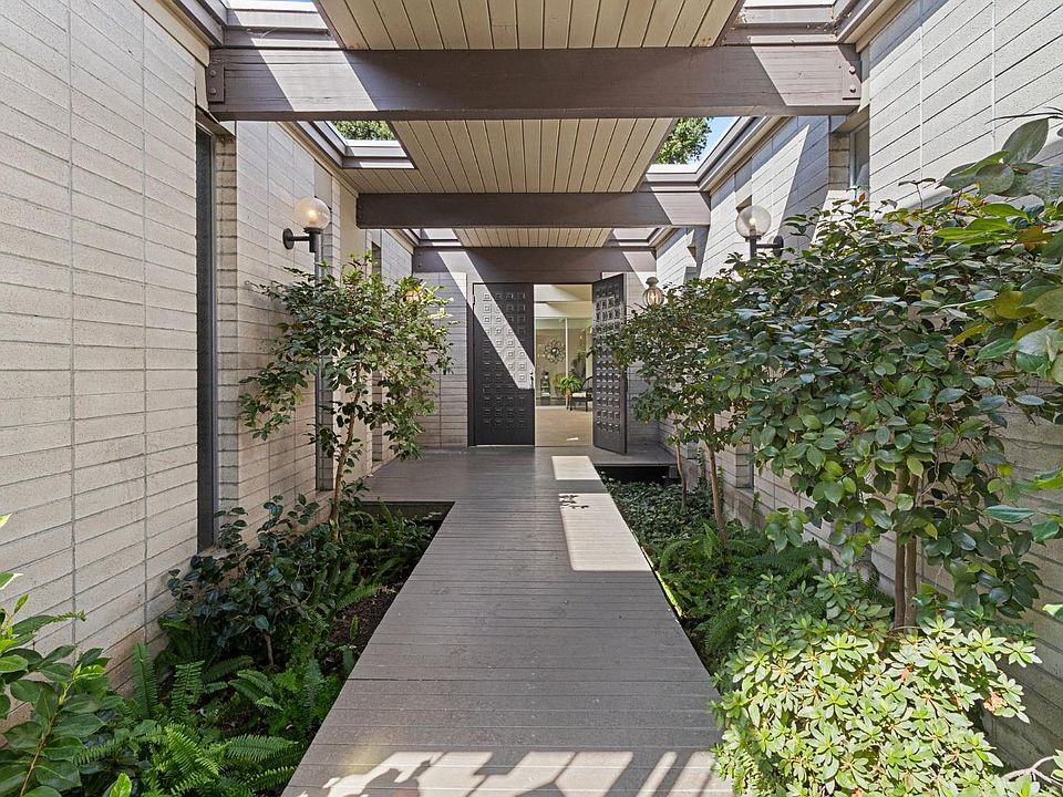 This stunning Mid-Century La Loma home is a rare find, brimming with original details that exude timeless character and beauty. The interior features exquisite terrazzo tile flooring and elegant wood-beamed ceilings throughout (including hiding under that drop ceiling in the kitchen) - true hallmarks of the era's design. Natural light pours into the spacious living areas through the expansive floor-to-ceiling windows, which also provide serene views of Dry Creek that meanders beyond the property. With four generously sized bedrooms, including two that could be primary suites (the current owners converted the original primary into an office) and three bathrooms, this home offers ample space and comfort. The outdoor space will charm with its winding paths, multiple patio spaces and large pool area that invites relaxation and entertaining. Whether you choose to keep the home's original finishes or remodel with your own cosmetic updates, 221 El Rio is ideal for those who appreciate the beauty of mid-century design.