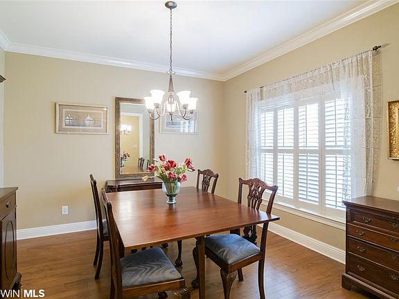 Incredible deal in Fairhope AL. Custom one-story 3 Bedroom brick house with a Bonus Room and Dining Room for a 4th bedroom and study options. Located in Falls Creek Subdivision, this home includes crown molding, hardwood flooring, and kitchen has cherry finish cabinets, granite counters, and stainless and black appliances. Master Suite has double doors leading to bath with dual sinks, shower, large walk-in closet, private watercloset, and garden tub. Enjoy the back patio with a fenced backyard lined with trees. Multiple dining options with the Breakfast Bar, breakfast area off kitchen, and a Formal Dining room. Other features include Den with gas fireplace, split floor plan, 2nd Bath with dual sinks and private shower area, irrigation system, wired for home generator. Less than an hour to Beaches, and minutes from downtown Fairhope, don't miss your chance to call this one home.