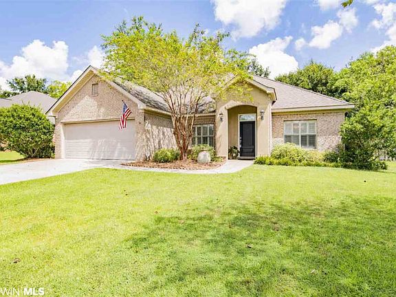 GREAT PRICE in Fairhope AL. Custom one-story 3 Bedroom brick house with a Bonus Room and Dining Room for a 4th bedroom or study options. Located in Falls Creek Subdivision, this home includes crown molding, hardwood flooring, and kitchen has cherry finish cabinets, granite counters, and stainless and black appliances. Master Suite has double doors leading to bath with dual sinks, shower, large walk-in closet, private watercloset, and garden tub. Enjoy the back patio with a fenced backyard lined with trees. Multiple dining options with the Breakfast Bar, breakfast area off kitchen, and a Formal Dining room. Other features include Den with gas fireplace, split floor plan, 2nd Bath with dual sinks and private shower area, irrigation system, wired for home generator, and HVAC new in 2017. Less than an hour to Beaches, and minutes from downtown Fairhope, don't miss your chance to call this one home.
