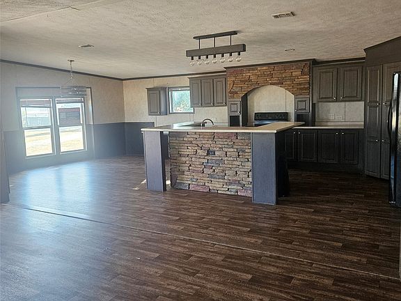 New home in your future? Check out this charming 3 bedroom 2 bath manufactured home on 1 acre with a few nice trees. Open living area has a stack stone fireplace and wall of windows. Plentiful cabinets,walk in pantry and desk space can be found in the spacious island kitchen. The adjoining dining room has beautiful special lighting. Laundry room, with outdoor access, is ready for full size washer, dryer and freezer. Primary bedroom with ensuite includes double vanities, garden tub, separate shower and walk in closet. Secondary bedrooms are a good size, Small fenced in yard off the side porch via the laundry room. The 1200 SF shop building with 400 SF carport provides great workspace, storage and covered parking. Come out and take a look!