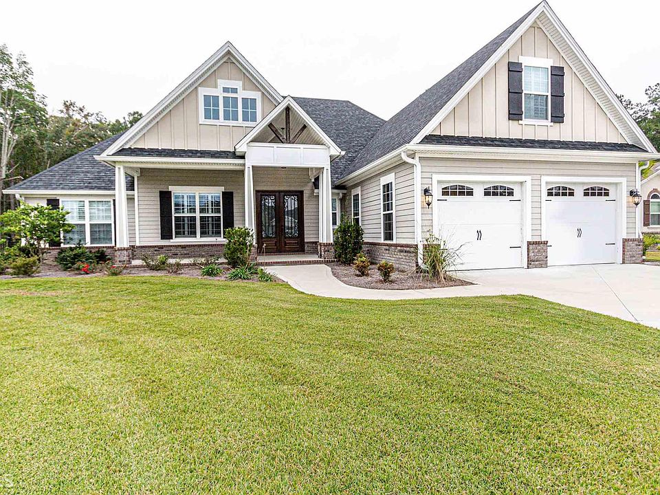 No time to build? This home is just over a year old and still shows like a model with added upgrades! With beautiful features, both outside and in, enjoy the open concept floorplan, easy to maintain wood-tile and neutral paint colors. An oversized island with granite, black stainless appliances including a gas range, make entertaining a breeze! This master bedroom boasts a gorgeous ensuite with oversized walk-in closet and shower, plus a soaking tub and double vanity. With 3 additional large bedrooms downstairs and a spacious bonus room and full bath upstairs, this home offers a great layout and space for everyone... even a great laundry room and built-in "drop zone" are here! Lawn maintenance included in HOA payment and swimming pool is just down the street in this gated community of Fiddlers Cove. Plantation shutters, screened lanai and a fenced-in back yard were all added extras. Call to preview today!