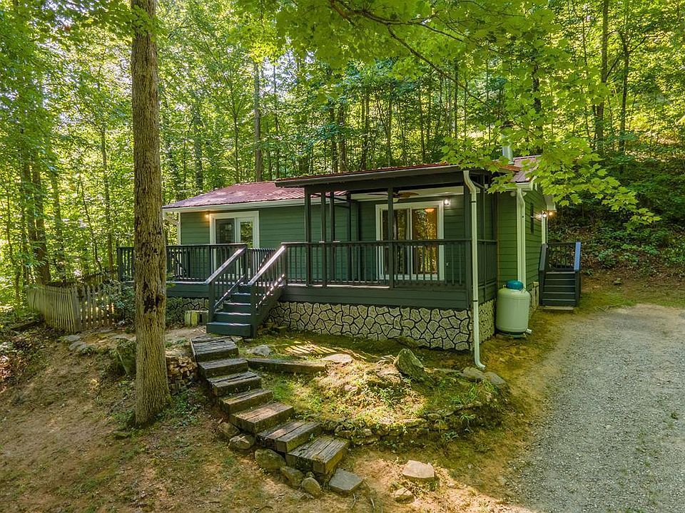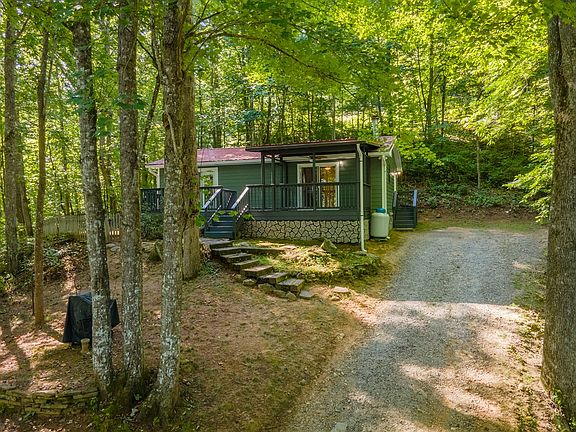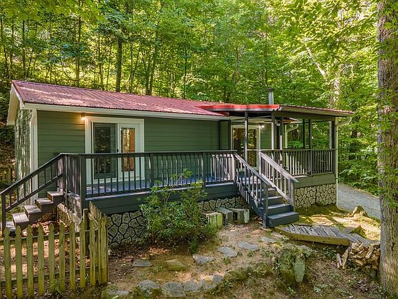 NEW PRICE! Now $295k! Nestled in the beautiful Western North Carolina Mountains lies this quaint 2 bedroom, 1 bath private cottage! Pour yourself a cup of coffee in the morning or a glass of wine in the evening, and listen to the rushing sound of the Tuckasegee River on the front porch! Escape the hustle and bustle of everyday life and enjoy this private mountain getaway with spectacular winter views! Only minutes away from Lake Glenville, which boasts sandy lake access, several trailheads for hiking, and boat access for recreation, play, and relaxation. Only 15 minutes away from Cashiers, 30 minutes from Highlands, and 1 hour 30 minutes from Asheville. Updates include new exterior paint, new LVP flooring, a new roof installed in 2020, new gutters installed in August 2023, and added central HVAC with a recently replaced condenser unit. Cozy up in front of the beautiful masonry wood fireplace in the living area. This home has been a successful vacation rental for the past 3 years. Pilot Mountain is a gated community that ensures the safety and security of its property owners. The HOA dues are very minimal but enough to protect your investment.