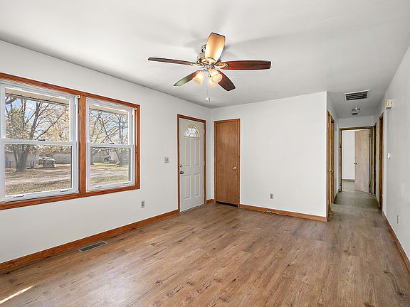 PERFECT little starter or golden years home! This 3 bedroom, 1 bath ranch has a nice layout; comfortably sized rooms; a large kitchen/dining area - great for entertaining - and has beautiful wood laminate flooring throughout. [BONUS: updated windows; freshly painted.] Set on a shy 1/3 acre and close to the amenities of town. MOVE-IN READY. Come and see!