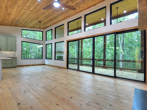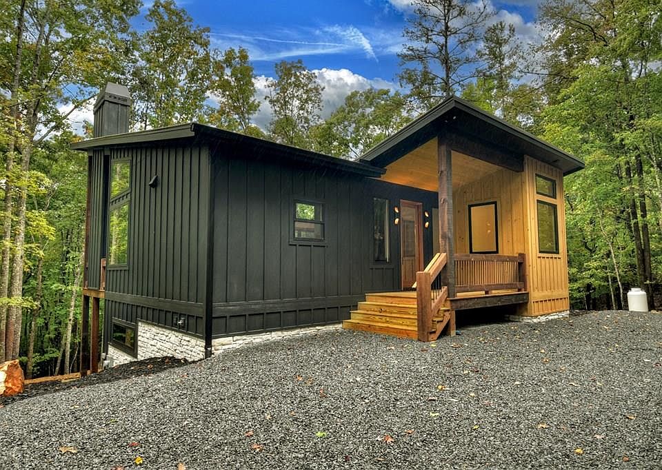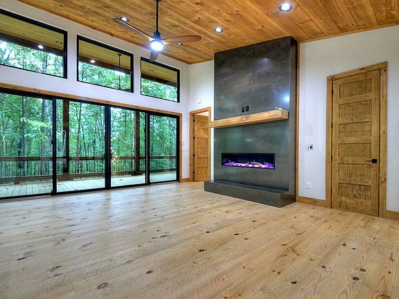 Stunning New Construction Mountain Modern on over 5 private acres! From the moment you arrive, you'll appreciate the complete privacy and breathtaking natural surroundings. The home's captivating design begins with a covered front porch that opens into an expansive open-concept living space, featuring a wall of windows and massive sliders that flood the interior with natural light while showcasing serene views of the forest. The modern upscale kitchen is a showstopper, equipped with a 36-inch gas range, gold accents, a large kitchen island, and a spacious corner pantry. The dining area is a highlight of the home, featuring huge fixed glass windows that seamlessly merge indoor and outdoor living. The great room boasts a spectacular modern fireplace and chic upscale lighting, creating a stylish and welcoming ambiance. The main level master suite is a tranquil retreat, complete with a custom accent wall featuring modern reading sconces, a walk-in closet with washer/dryer hookup, a luxurious modern tile shower, and sleek double vanities. Step outside to the huge covered porch with a wood-burning outdoor fireplace, perfect for relaxing and enjoying the tranquil forest views. A half bath finishes off the main level. The terrace level offers even more living space with a cozy gas log fireplace, wet bar with wine cooler, and additional storage under the stairs. There are two additional bedrooms, one with an en suite bath, as well as a bunk room and a third full bath with a tiled tub surround. The lower-level patio is ideal for a hot tub, providing a private outdoor retreat. With ample parking, usable acreage, and a second washer/dryer hookup in the basement, this home combines luxury with functionality. Whether you're looking for a luxurious short-term rental or an exquisite mountain getaway, this property truly has it all!