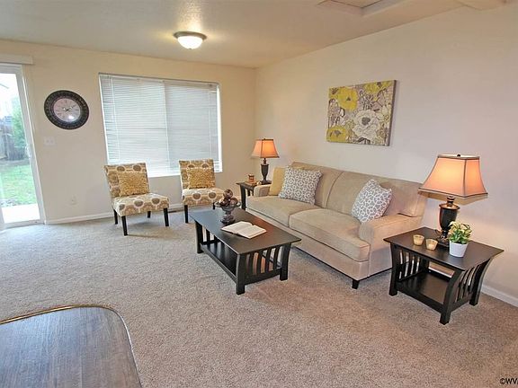Get away to this modern and cozy home in Independence just 20 minutes from Salem and 30 to Corvallis. The open floor plan and neutral colors invite you in to relax in the living room or enjoy family time around the table in the dining area. The kitchen flows into the dining and living rooms, and is all about convenience and quality time. Plentiful, new granite counter tops make meal prep and clean-up a breeze plus the full compliment of kitchen appliances are included. Hangout at the breakfast bar and chat with the cook or enjoy a cup of coffee. Entertain in the gathering room style living spaces or let the party spill out onto the patio and into the fully fenced back yard. The half bath on the main floor is perfect for guests. Generous bedrooms are convenient to the full bath with 2 entries; the hallway and the master bedroom. Rest in the comfortable master bedroom or take advantage of the extra space in the walk-in closet. Move in and start enjoying right away. This well-cared-for home built in 2006 features vinyl windows throughout, plentiful storage plus new carpet, fresh interior paint, and central air conditioning installed in 2016. This bright and open two-story townhome with a one car garage, and a fully fenced and large backyard, is perfect for first time buyers as well as investors. For more information on this great property or to schedule a showing, please give us a call.