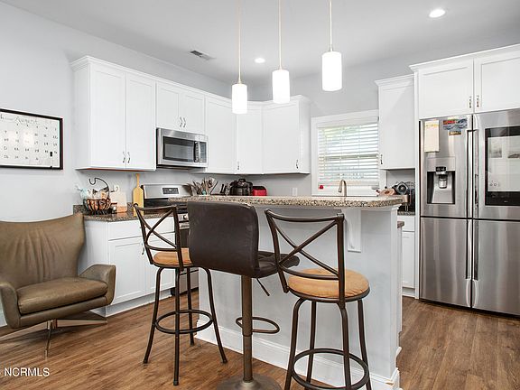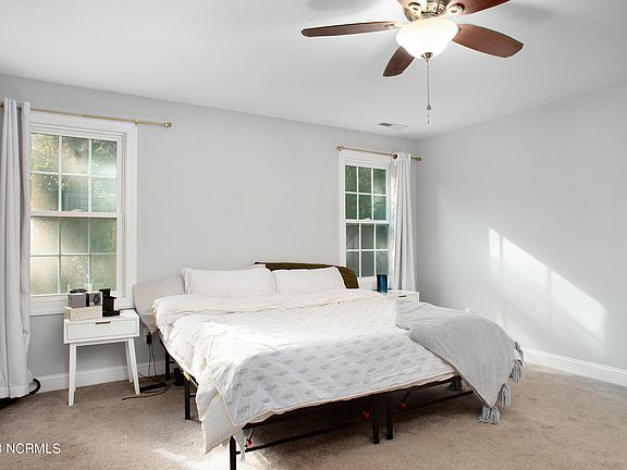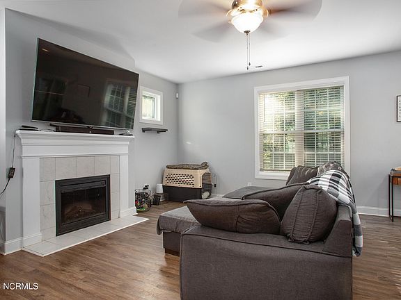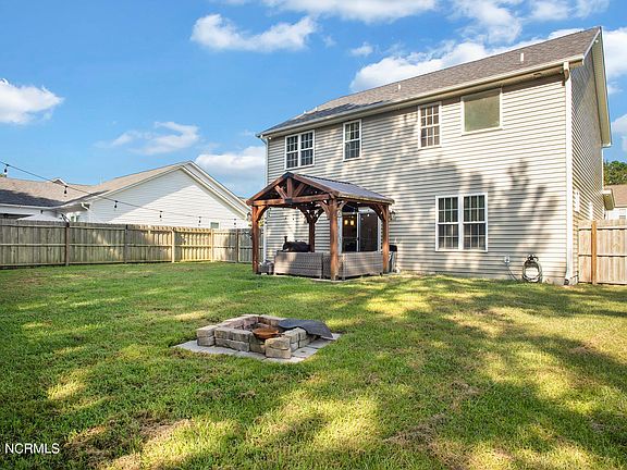 Welcome to your dream home in the picturesque Green Trees subdivision! This stunning 4-bedroom, 2.5-bathroom residence is a true gem that offers the perfect blend of style, comfort, and convenience. As you approach, you'll immediately be struck by the inviting curb appeal, highlighted by a spacious front porch - an ideal spot for enjoying your morning coffee or greeting neighbors. Enter inside, and you'll be greeted by an open floor plan that seamlessly connects the living room, dining area, and kitchen. The living room boasts a cozy fireplace, creating a warm and inviting atmosphere for relaxation or entertaining. The kitchen is a chef's dream, featuring a convenient breakfast bar, gleaming stainless-steel appliances, and elegant white cabinetry. Whether you're hosting a formal dinner party or preparing a casual meal, this kitchen has you covered. Upstairs, you'll discover the owner's suite, a tranquil retreat where you can unwind after a long day. The en-suite bathroom offers both style and functionality. Additionally, there are three spacious guest bedrooms offering plenty of room to spread out. But the beauty of this home doesn't stop indoors. Head outside to find a covered patio, an ideal space for grilling and outdoor dining. The fenced backyard provides privacy and security, backing up to a serene wooded area, creating a peaceful oasis right in your own backyard. Location is key, and this home is perfectly situated between Historic Downtown New Bern and MCAS Cherry Point. Enjoy easy access to shopping, dining, entertainment, and the beautiful waterfront area of New Bern. Plus, with Cherry Point just a short drive away, this home is an excellent choice for anyone working on base. Don't miss the opportunity to make this exceptional property in the Green Trees subdivision your forever home. Call us today to schedule your private tour!