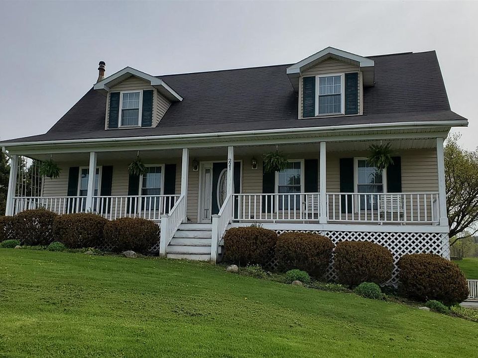 Enjoy the private yard to the pool and veggie garden or sit on your front porch looking at widespread views of the surrounding hills. This Cape offers 3-4 bedrooms, a bath on each floor and lots of storage. Pellet stove heats the house for very low utilities. In addition to the two car garage the 28 X 24 pole barn offers space for a shop, animals or a Guest B&B. This is a special home for country living close to everything. Must see it.